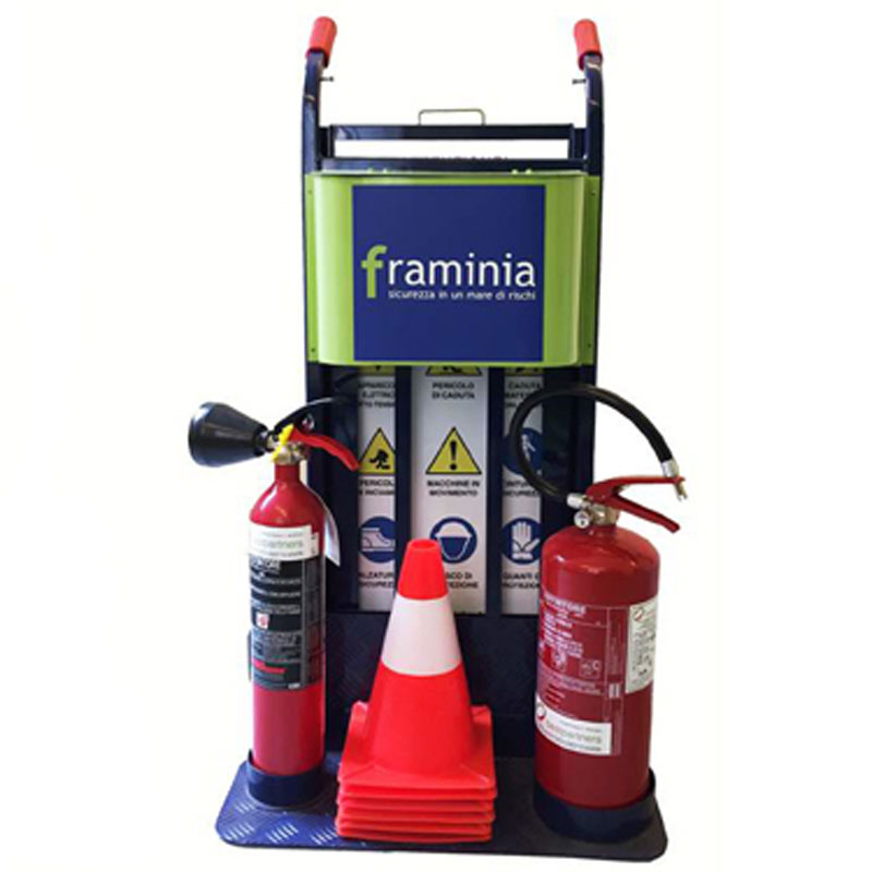 Safety Kit responds both to the regulatory requirements in terms of signage and fire protection equipment, plus the compactness and transportability particularly appreciated in the world of cinema-audiovisual production and theater. The trolley is made of aluminium, lightweight and easily transportable, equipped with two practical containers where it is possible to store additional material and specific documentation. The kit is offered with a rental formula, practical and convenient, and can also be integrated or customized in the equipment: a unique customized solution.