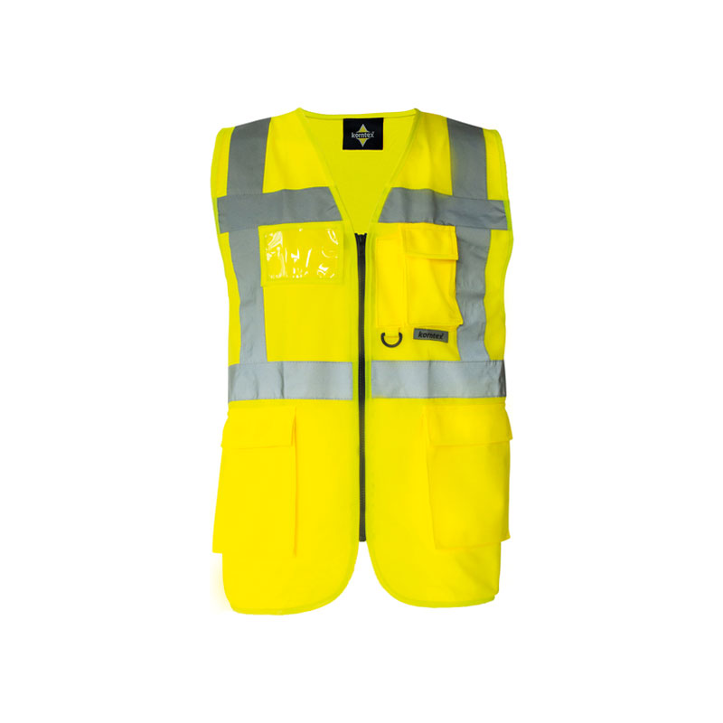 Gilet di sicurezza Executive multifunzione. Colori giallo e arancione conformi alla normativa EN ISO 20471:2013 + A1:2016, Oeko-Tex® Standard 100, colore arancione conforme anche alla normativa GO/RT 3279, altri colori non conformi alla normativa EN ISO 20471:2013 + A1:2016 e non sono PPE. Una fascia riflettente larga 5 cm intorno al corpo, due fasce riflettenti larghe 5 cm perpendicolari alle spalle, chiusura frontale con cerniera, due tasche con chiusura in velcro, multifunzione: tasca per carta d’identità, tasca per smartphone, portapenne e portachiavi, durata delle proprietà riflettenti in conformità alla normativa EN per 25 cicli di lavaggio a 40°C. Confezionato singolarmente in una pratica borsa in polietilene. MATERIALE 100% poliestere| Taglia | S, M, L, XL, XXL, 3XL |